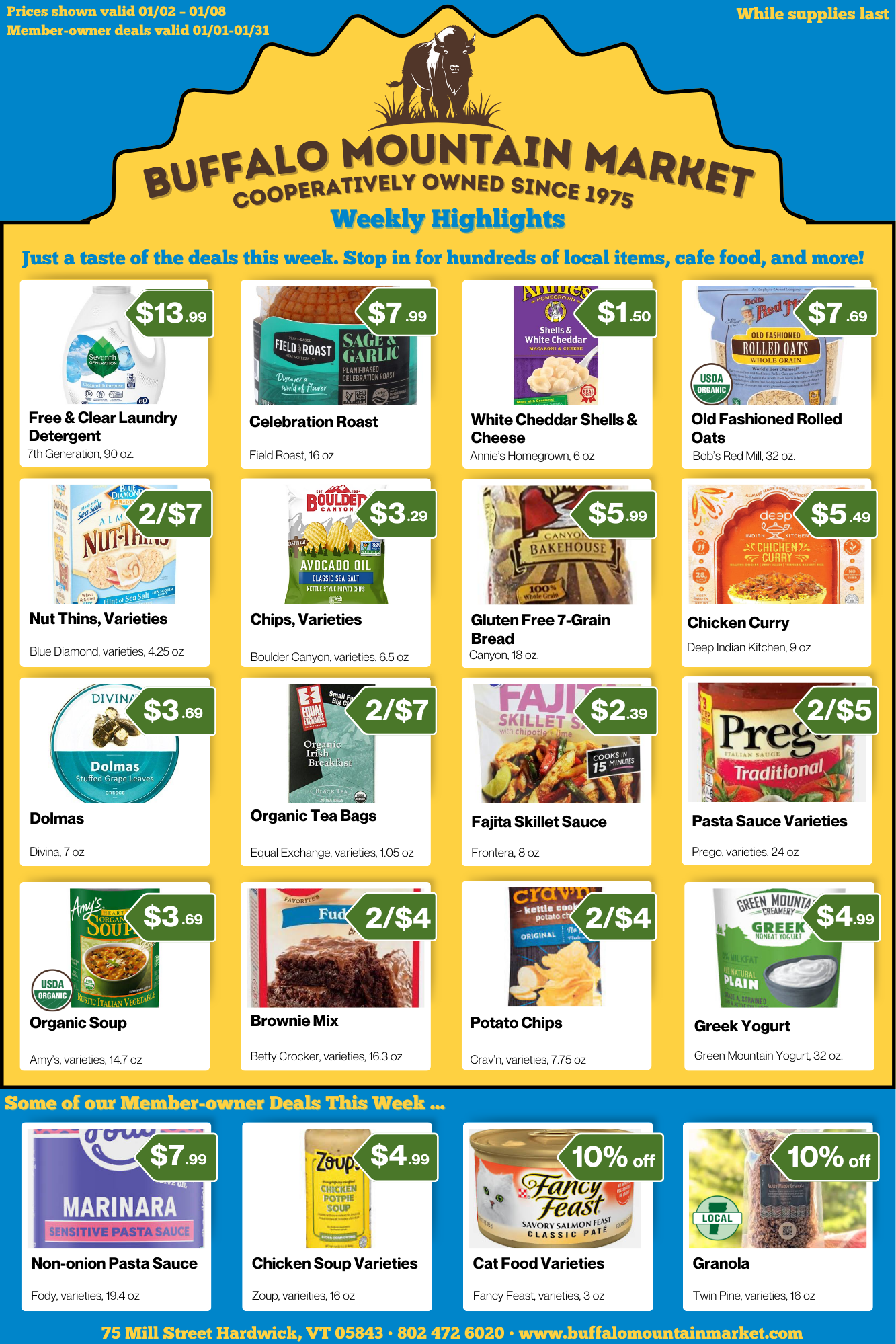 As always, check the store for ongoing sales and deals not mentioned below. Hundreds of local items, affordable organic options, household goods, and gifts for every occasion. Stop by the co-op today to see what’s in store.