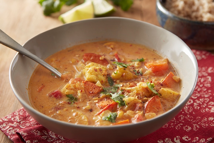 Roasted Cauliflower and Sweet Potato Curry Soup
